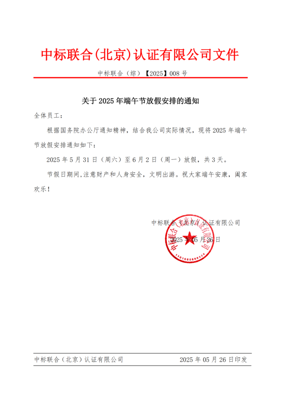 關于2025年端午節放假安排的通知